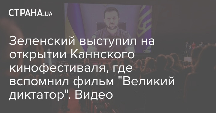 Сегодня, 17 мая, президент Украины Владимир Зеленский выступил по видео на церемонии открытия Каннского кинофестиваля и вспомнил фильмы "Великий диктатор" и "Апокалипсис сегодня", а также то, как они изображают войну и диктаторов. Об этом пишет издание The New York Times.