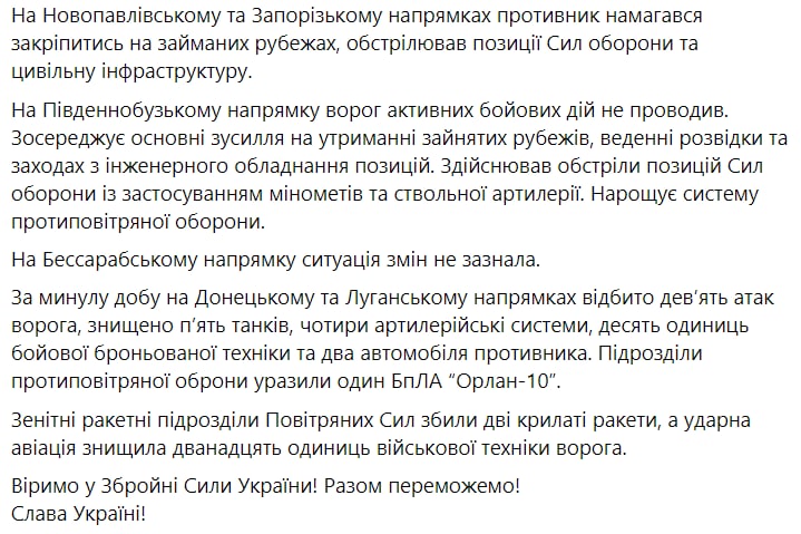 Ситуация на Донбассе остается тяжелой, враг не прекращает попытки наступления. Фото: facebook/GeneralStaff.ua
