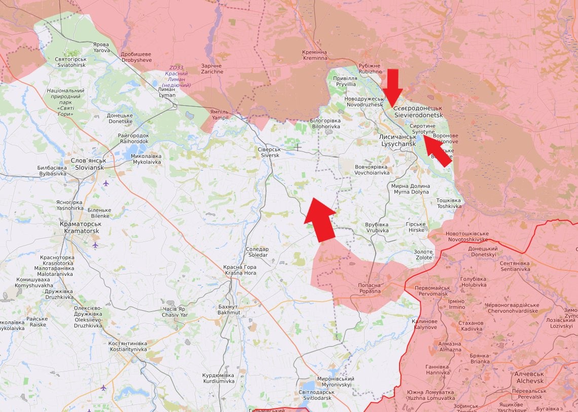 Россия готовит наступление на Славянск и продолжает штурм Северодонецка. Также враг продвигается к трассе Лисичанск-Бахмут, которая позволит отрезать Луганскую область от Украины.