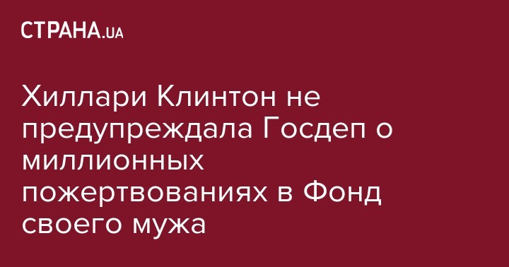 Хиллари Клинтон не предупреждала Госдеп о миллионных пожертвованиях в Фонд своего мужа