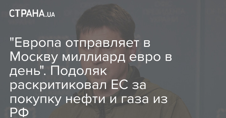 Советник главы Офиса президента Украины Михаил Подоляк раскритиковал Европу, которая продолжает закупать ресурсы у РФ, несмотря на вторжение в Украину.