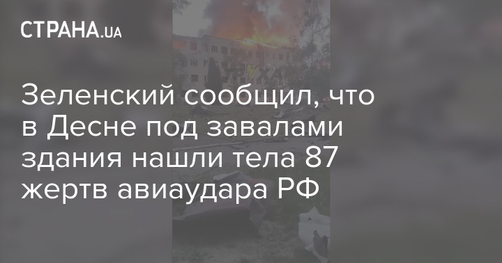 "Сегодня мы закончили работы в Десне. К сожалению, под обломками там обнаружены 87 жертв. 87 убитых", - сказал он.