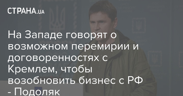 На Западе говорят о возможном перемирии и договоренностях с Кремлем, чтобы возобновить бизнес с РФ - Подоляк