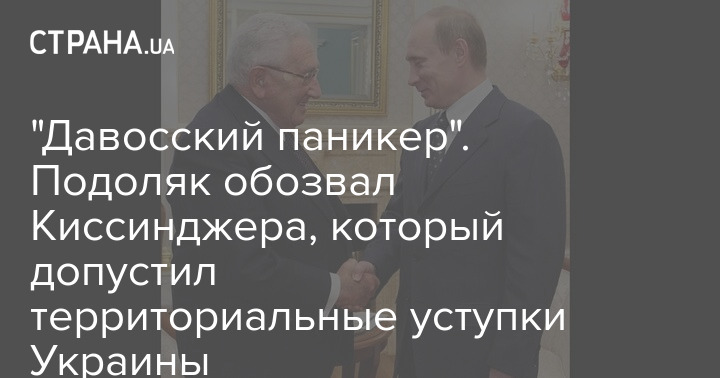 "Давосский паникер". Подоляк обозвал Киссинджера, который допустил территориальные уступки Украины