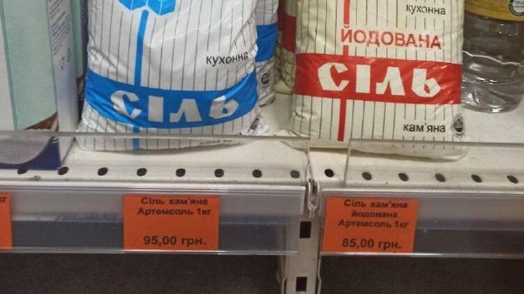 В соцсетях появилось фото пачки артемовской соли по цене 95 гривен за кило (до войны килограмм стоил около семи гривен). Где сделано это фото доподлинно неизвестно. Однако в телеграм-каналах пишут, что по такой цене продают соль в Мостисках Львовской области.