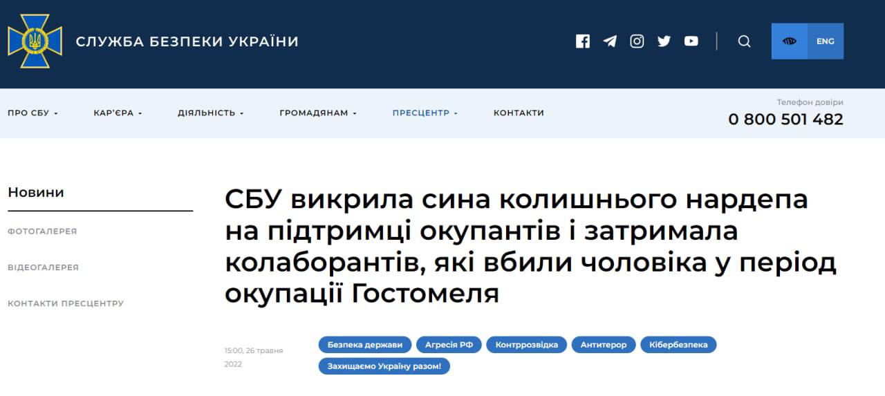 Он критиковал действующую украинскую власть и готовил торжества ко Дню победы, сообщают в спецслужбе.