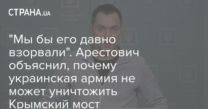 Советник главы Офиса президента Алексей Арестович объяснил, почему украинская армия не может уничтожить Крымский мост.