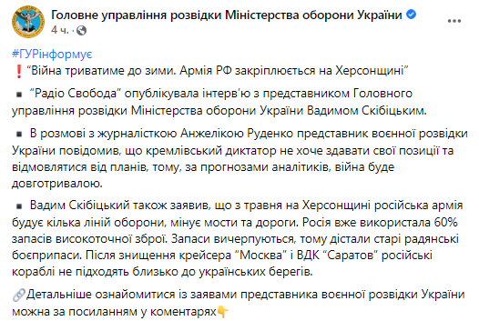 Война в Украине продлится до зимы. А армия РФ закрепляется в Херсонской области. Об этом сообщил представитель Главного управления разведки Минобороны Украины Вадим Скибицкий.