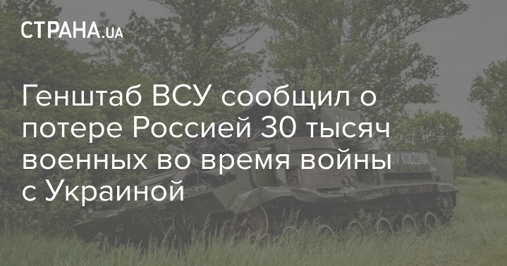 Генштаб Вооруженных сил Украины (ВСУ) озвучил общие боевые потери армии РФ за время войны в Украине - с 24 февраля по 28 мая. Сообщается, что отметка в тридцать тысяч по потерям личного состава уже достигнута.