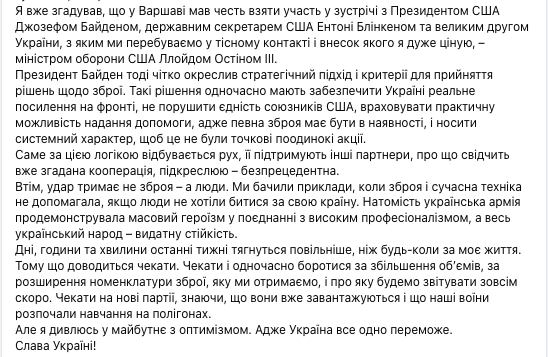 Об этом сообщил министр обороны Алексей Резников в Facebook.