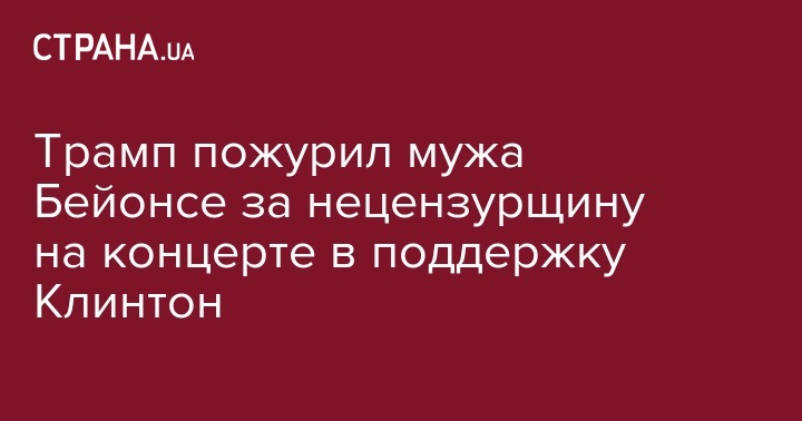 Кандидат в президенты США от республиканцев Дональд Трамп раскритиковал мужа знаменитой поп-дивы Бейонсе, рэпера Jay Z за то, что он в своем выступлении на концерте в поддержку Хиллари Клинтон использовал нецензурную лексику, передает The Hill.