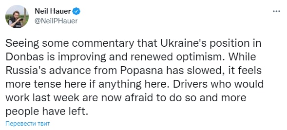 По его данным, дорога из Северска сейчас тоже очень опасна. То есть выехать из Северодонецка сейчас очень проблематично.