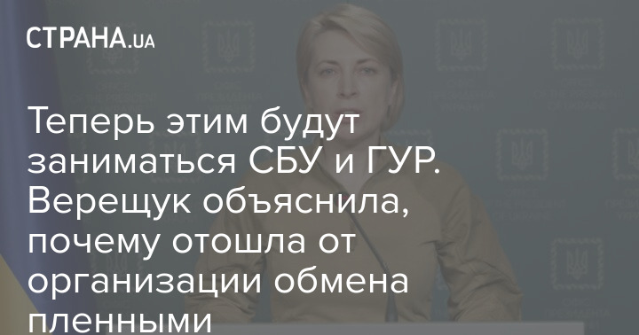 Верещук утверждает, что это было совместное решение: как ее самой, так и ГУР и СБУ. Эти ведомства теперь и возглавят процесс обмена военнопленных.