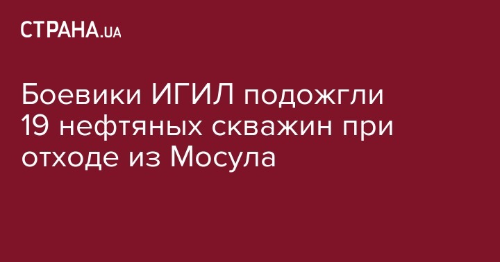 На севере Ирака боевики ИГИЛ, отступая из Мосула, подожгли 19 нефтяных скважин. Об этом сообщает Русская служба ВВС.