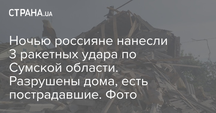 Ночью россияне нанесли три ракетных удара по Сумской области, в результате которых несколько людей получили ранения. Об этом сообщает губернатор региона Дмитрий Живицкий.