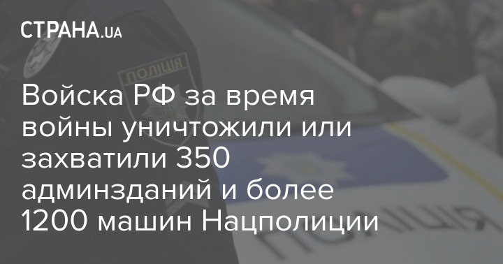 Войска РФ за время войны уничтожили или захватили 350 админзданий и более 1200 машин Нацполиции