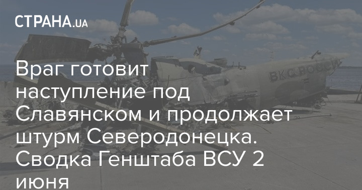 В Генеральном штабе Вооруженных сил Украины опубликовали оперативную сводку с фронта боевых действий по состоянию на 18:00 2 июня, в которой говорится, что российские войска ведут подготовку к наступлению в Харьковской области и на севере Донецкой области.