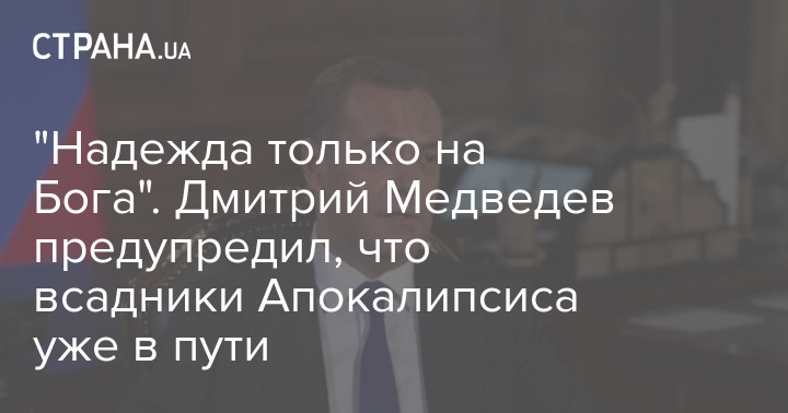 "Всадники Апокалипсиса уже в пути, и вся надежда только на Господа Бога, на Всевышнего", - подчеркнул Дмитрий Медведев.