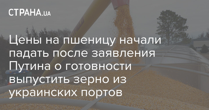 Мировые цены на пшеницу начали падать и вернулись к уровню двухмесячной давности, после заявления президента России Владимира Путина, что РФ готова выпустить корабли с зерном из украинских портов.
