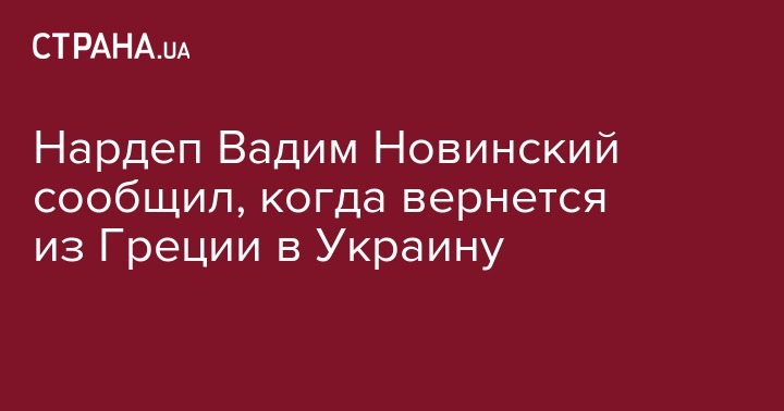 Нардеп Вадим Новинский сообщил, когда вернется из Греции в Украину