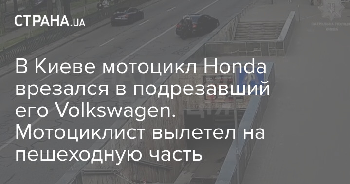 В Киеве мотоцикл Honda врезался в подрезавший его Volkswagen. Мотоциклист вылетел на пешеходную часть