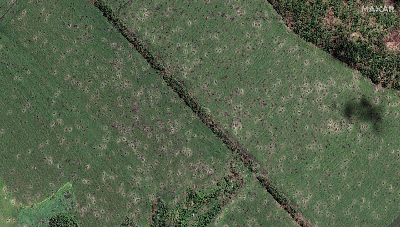 Maxar опубликовал фото поля в районе села Долгенькое, изрешеченное снарядами
