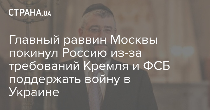 Главный раввин Москвы покинул Россию из-за требований Кремля и ФСБ поддержать войну в Украине