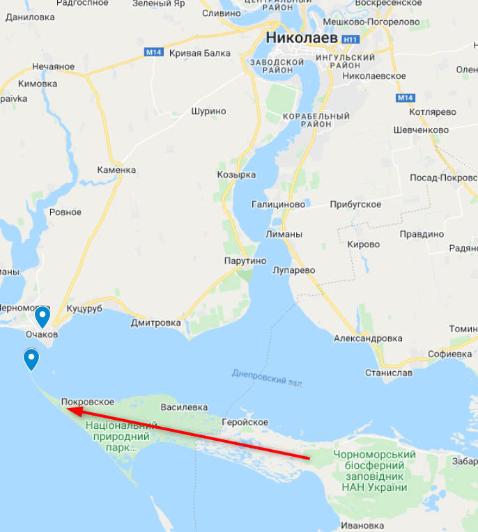 Также этот предполагаемый захват создает условия для высадки десанта в районе Очакова и наступления на Николаев с юго-запада (сейчас противник находится на юго-востоке Николаевской области). Расстояние между косой и Очаковым - чуть более трех километров.