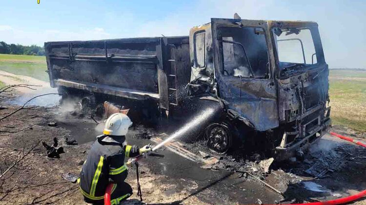 "10 июня в 10:13 в оперативно-диспетчерскую службу Бучанского района поступило сообщение о том, что вблизи хутора Почепин, Макаровского СТГ в Киевской области грузовой автомобиль подорвался на мине. На место происшествия прибыли спасатели из Макарова и выяснили, что автомобиль "DAF" с прицепом, наполненный песком, взорвался на мине и загорелся. Водитель, к счастью, значительных травм не получил", - говорится в сообщении спасателей.