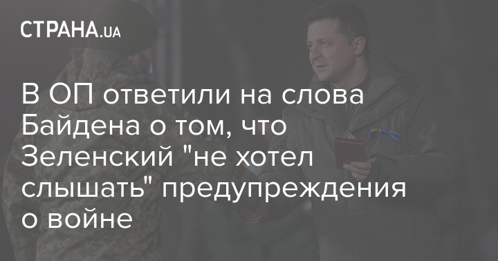 В ОП ответили на слова Байдена о том, что Зеленский "не хотел слышать" предупреждения о войне