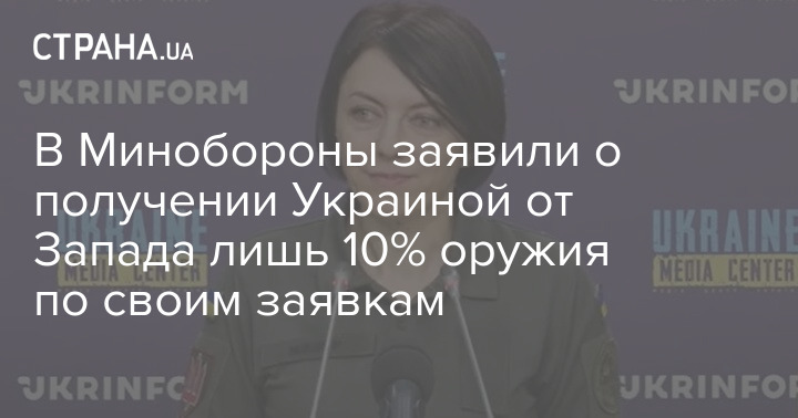 Украина получила от Запада лишь 10% оружия по своим заявкам. Об этом в эфире телемарафона заявила заместитель министра обороны Анна Маляр.
