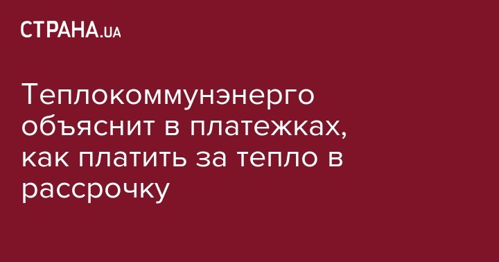 Национальная комиссия по госрегулированию в сфере энергетики и коммунальных услуг обязала теплокоммунэнерго информировать население о том, как при отсутствии права на субсидию платить за отопление в рассрочку. Памятку будут печатать на платежках с обратной стороны, передает пресс-служба комиссии.