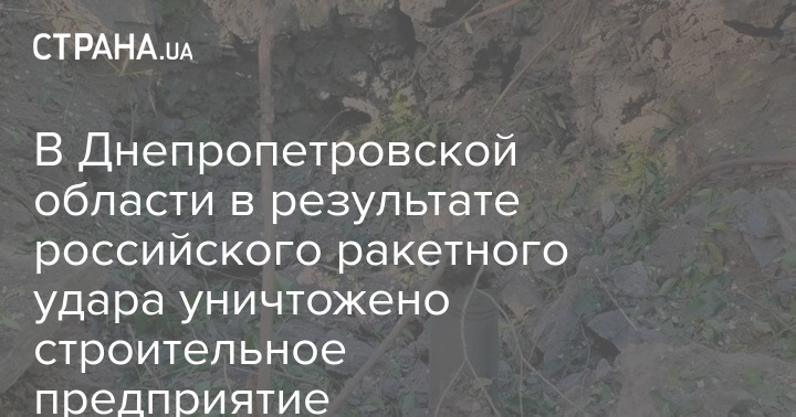 Войска РФ ракетным ударом по Днепропетровской области вечером 15 июня уничтожили строительное предприятие в Новомосковском районе.