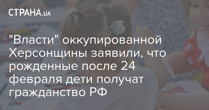 "Власти" оккупированной Херсонщины заявили, что рожденные после 24 февраля дети получат гражданство РФ