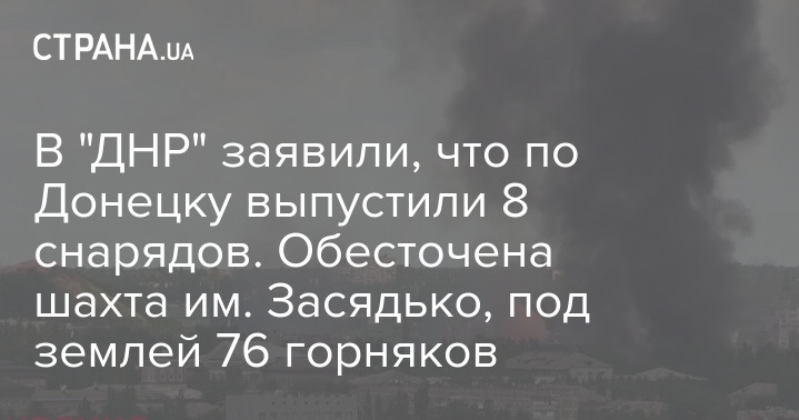 В "ДНР" заявили, что по Донецку выпустили 8 снарядов. Обесточена шахта им. Засядько, под землей 76 горняков