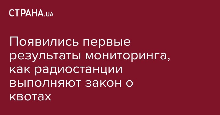Обнародованы первые результаты мониторинга выполнения закона о квотах на украиноязычные песни в радиоэфире. Об этом сообщает "Пространство свободы" - движение добровольцев" на своей странице в социальной сети Facebook.