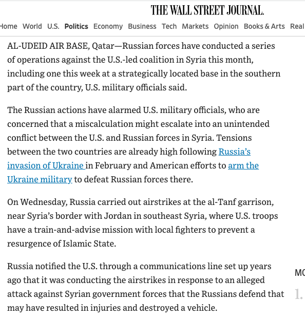 В июне российские вооруженные силы провели серию операций против возглавляемой США коалиции в Сирии, в том числе одну на этой неделе - на стратегически расположенной базе в южной части страны, рассказали американские военные чиновники.