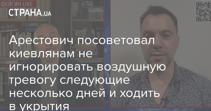 Советник главы Офиса президента Алексей Арестович советует киевлянам несколько следующих дней ходить в укрытия во время тревоги.
