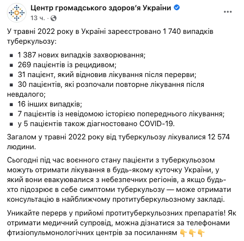 Также медики отмечают, что, несмотря на войну, пациенты с туберкулезом могут получить лечение в любом уголке Украины.