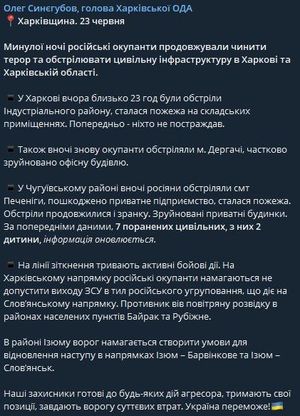 Тем временем война в Украине продолжается уже 120-й день. Мы следим за происходящим 23 июня в обновляемом материале