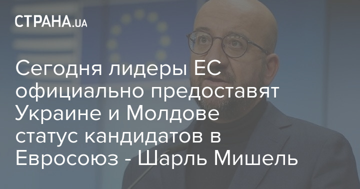 Лидеры ЕС сегодня официально предоставят статус кандидата на вступление в ЕС Украине и Молдове. Такую уверенность высказал глава Евросовета Шарль Мишель на саммите лидеров ЕС в Брюсселе.