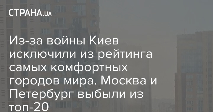 Из-за войны в Украине Киев исключили из рейтинга самых комфортных городов мира Global Liveability Index по версии журнала The Economist. Из-за последствий вторжения РФ в нашу страну российские Москва и Санкт-Петербург опустились с 15-го и 13-го мест на 80-е и 88-е.