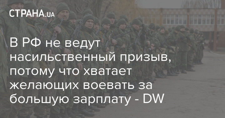 Издание Deutsche Welle провело расследование и выяснило, что Россия не ведет скрытой мобилизации с насильственным призывом в Вооруженные силы с целью участия в военных действиях в Украине. В регионах хватает желающих воевать добровольно за неплохую, по меркам российской глубинки, зарплату.