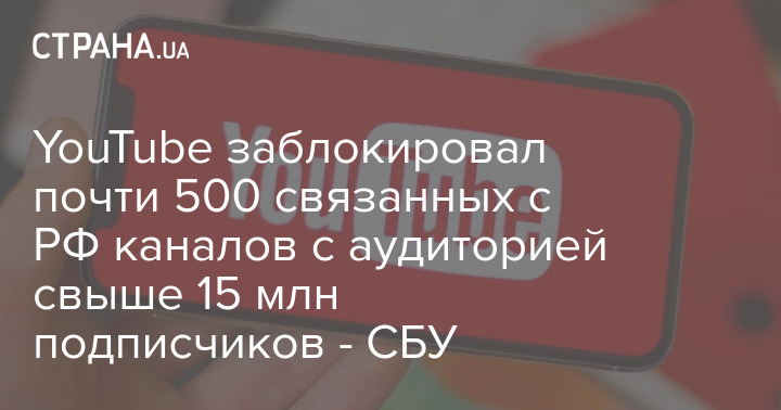 Видеоплатформа YouTube по запросам Службы безопасности Украины заблокировала почти 500 связанных с Россией каналов с аудиторией свыше 15 миллионов подписчиков.