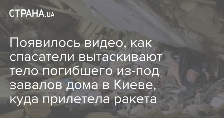 Появилось видео, как спасатели вытаскивают тело погибшего мужчины из-под завалов дома в Шевченковском районе Киева, по которому сегодня утром попала российская ракета.