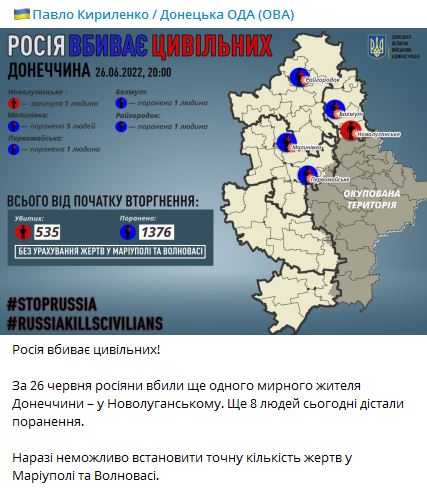 В понедельник, 27 июня, в Украине идет уже 124-й день войны с Россией.