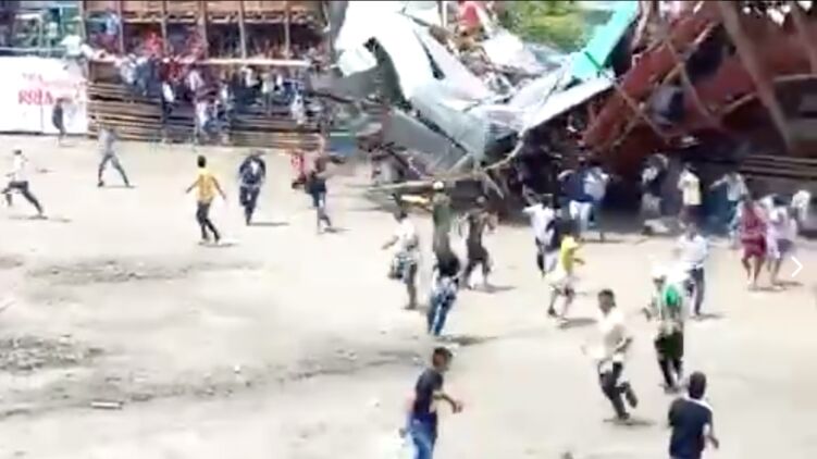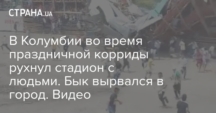 В Колумбии во время праздничной корриды рухнул стадион с людьми. Бык вырвался в город. Видео