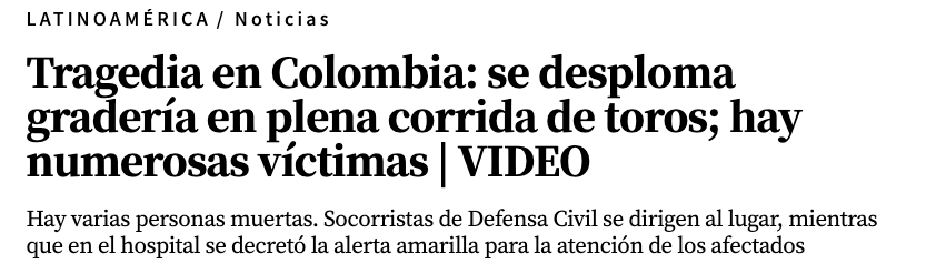 Во время торжеств в честь праздника Сан-Педро одна из переполненных людьми лож рухнула на арену, на которой также находились люди.