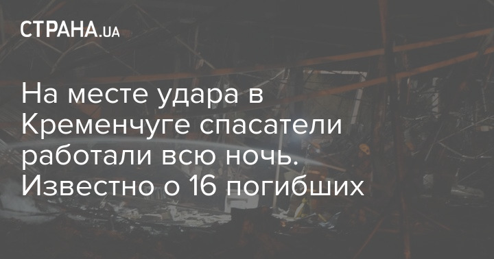 На месте удара в Кременчуге спасатели работали всю ночь. Известно о 16 погибших