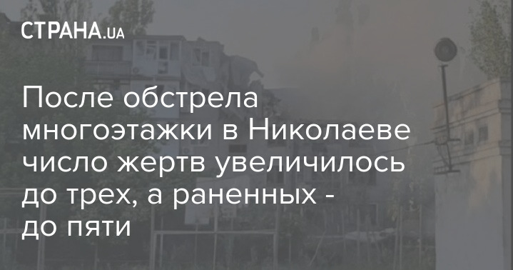 В результате удара по многоэтажке в Николаеве погибли три человека, еще пять ранены. Отметим, что утром сообщалось о двух погибших.